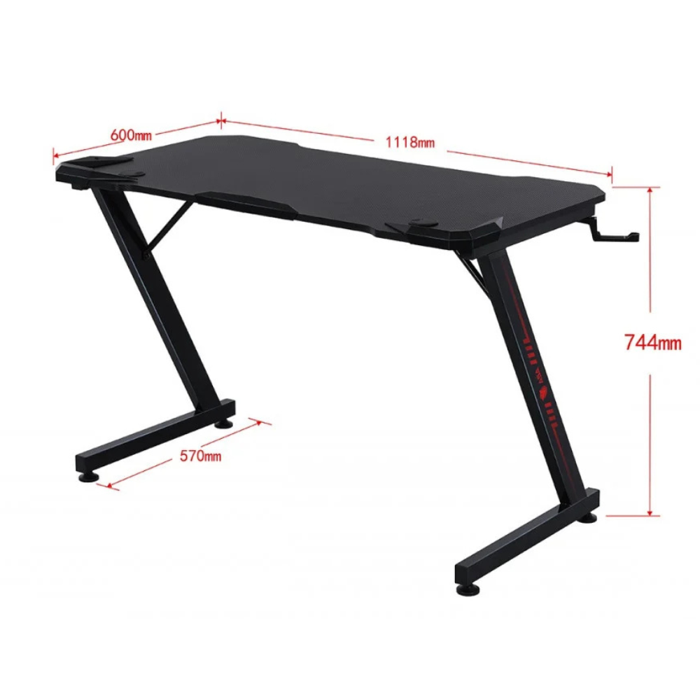 طاولة قيمنق بتصميم مميز و سطح بتصميم كاربون فايبر و ماوس باد وحامل كوب وحامل سماعة ومنظم اسلاك .المقاسات :العرض: 120CMالارتفاع: 75CMالعمق: 60CM