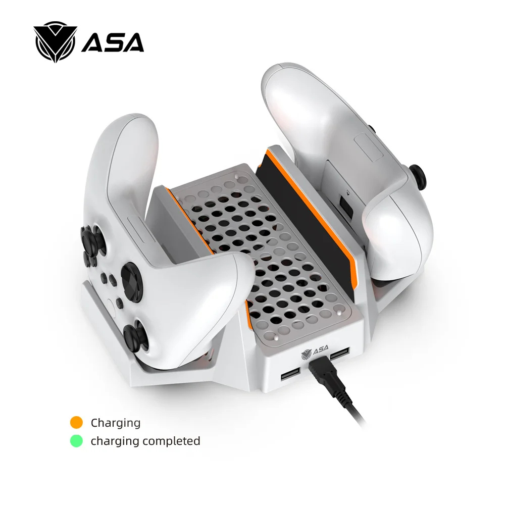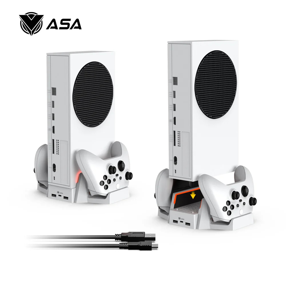【حامل 3 في 1】مصمم حصريًا لجهاز Xbox Series S - يمكن لمروحة التبريد المطورة والحامل الرأسي أن تمنع وحدة التحكم من ارتفاع درجة الحرارة أثناء اللعب، قاعدة النمذجة الفريدة مع الهيكل المعدني تجعلها صلبة وتبقى قوية جدًا؛ يشحن ويعرض وحدتي تحكم؛ تمت إضافة 2 × حزم بطاريات وحدة تحكم 800 مللي أمبير في الساعة لجهاز Xbox و 4 أغطية بطارية (2 غطاء لوحدة تحكم سلسلة Xbox، 2 غطاء لوحدة تحكم Xbox one).