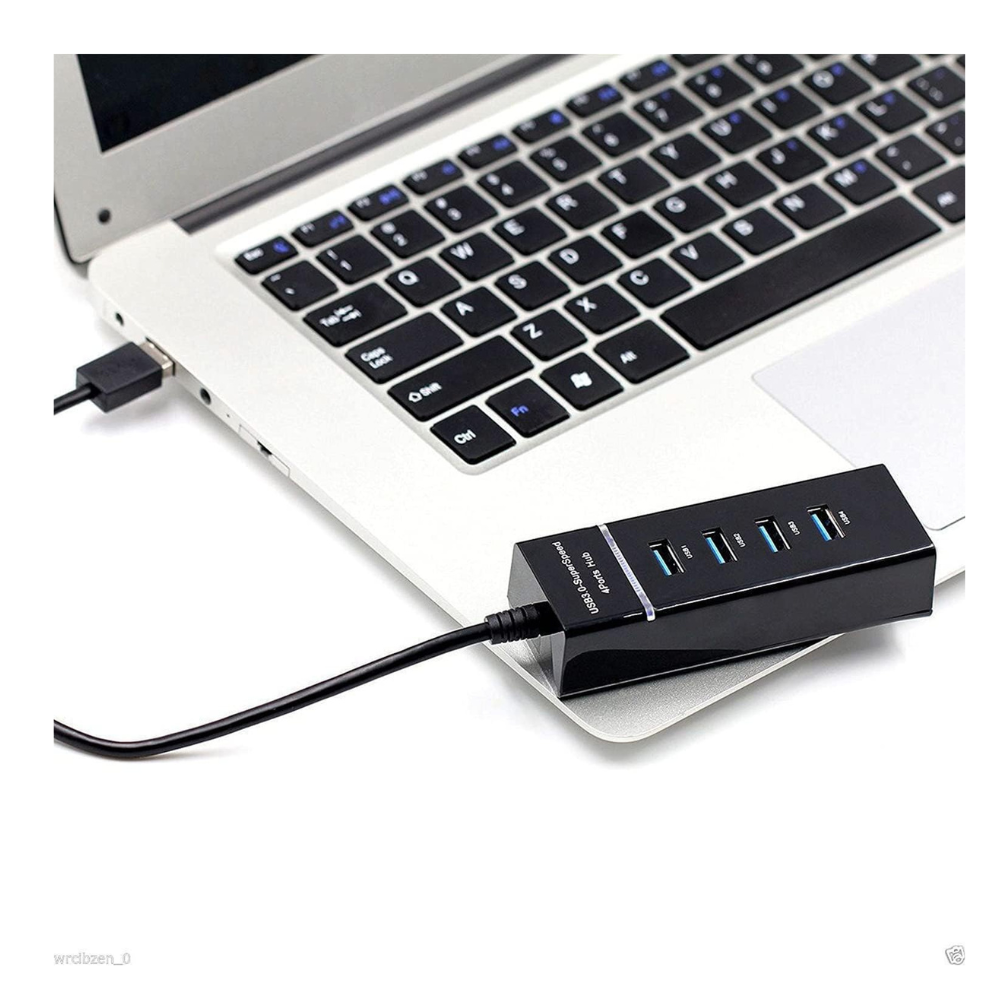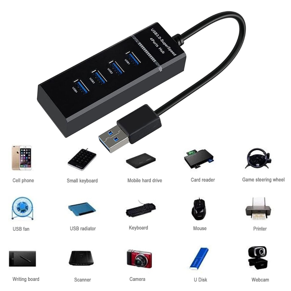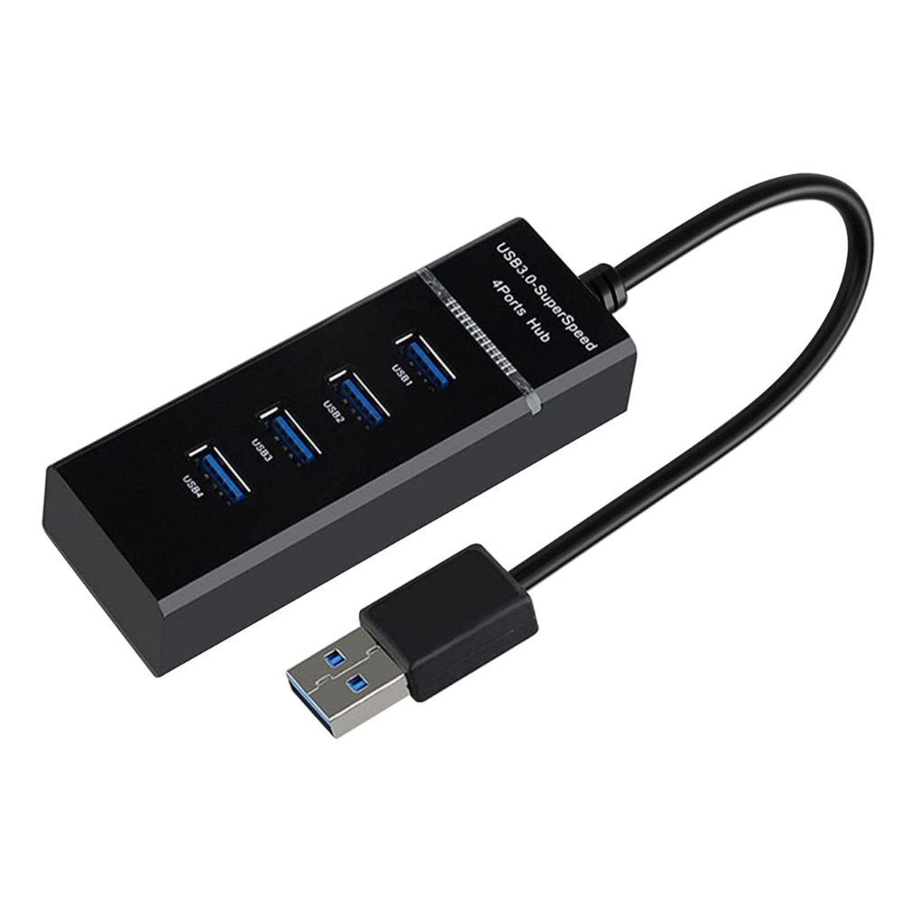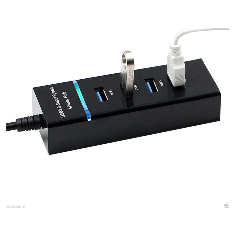 منفذ موزع USB 3.0 موزع بيانات USB عالي السرعة بـ 4 منافذ مع مؤشر LED للاب توب والكمبيوتر المحمول والقرص الصلب والكيبورد والماوس والمزيد - اسود